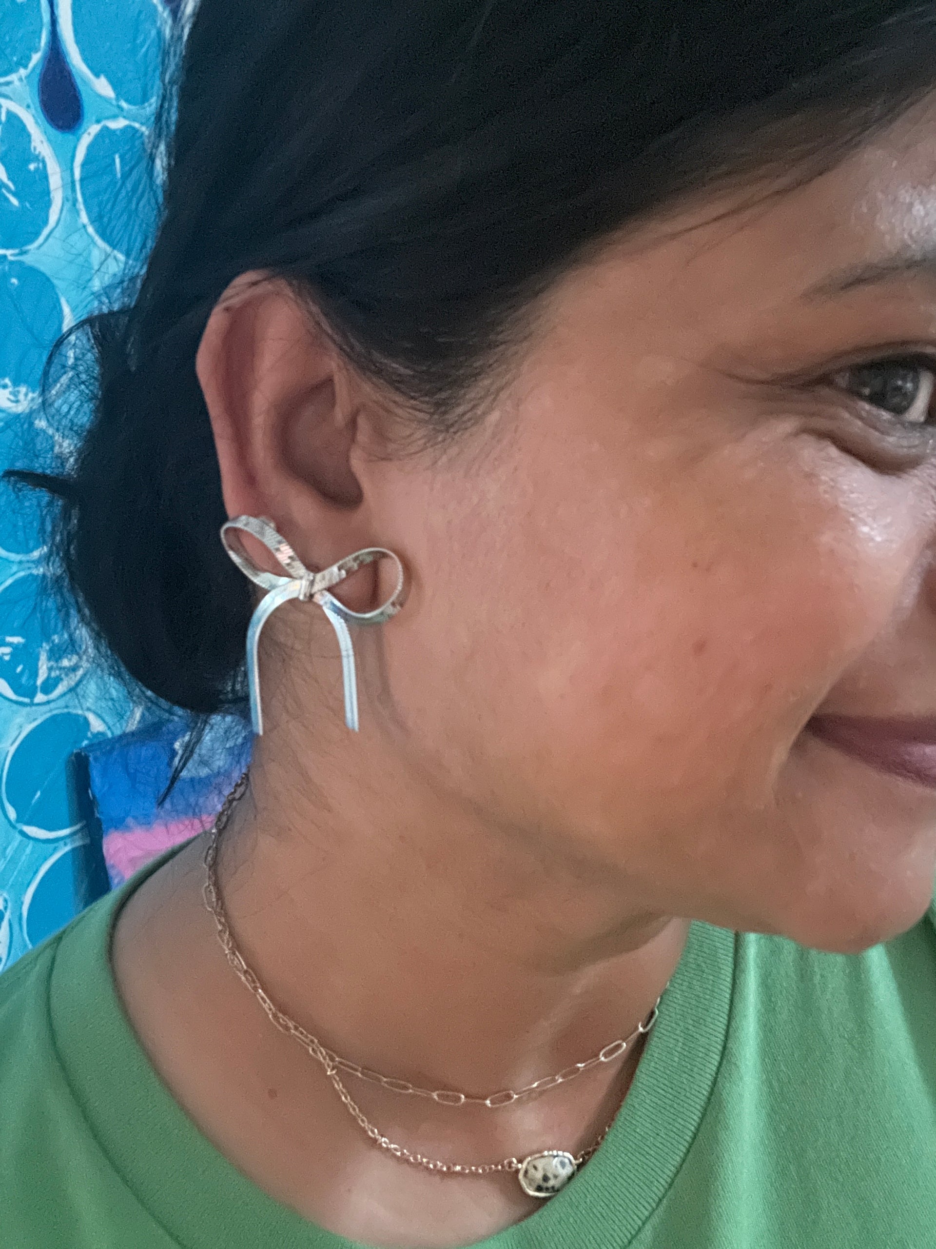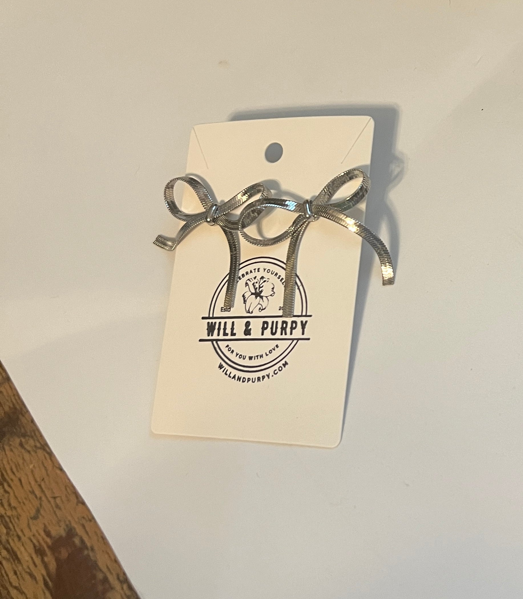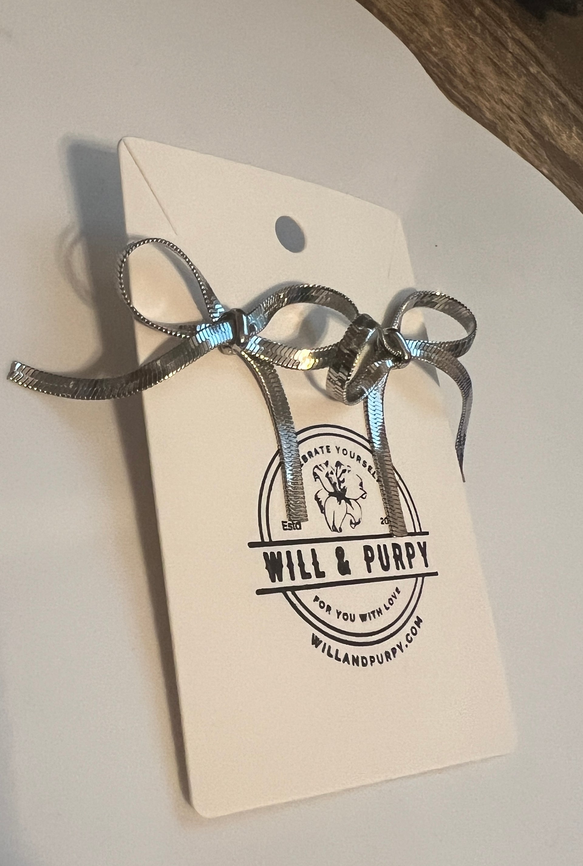 Elevate your style with our exquisite Silver Bow Stud Stainless Steel Snake Earrings, the perfect earrings, to effortlessly enhance any ensemble.