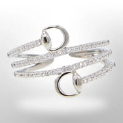 Equestrian Sterling Silver Adjustable Snaffle Bit Ring- Cz Accents