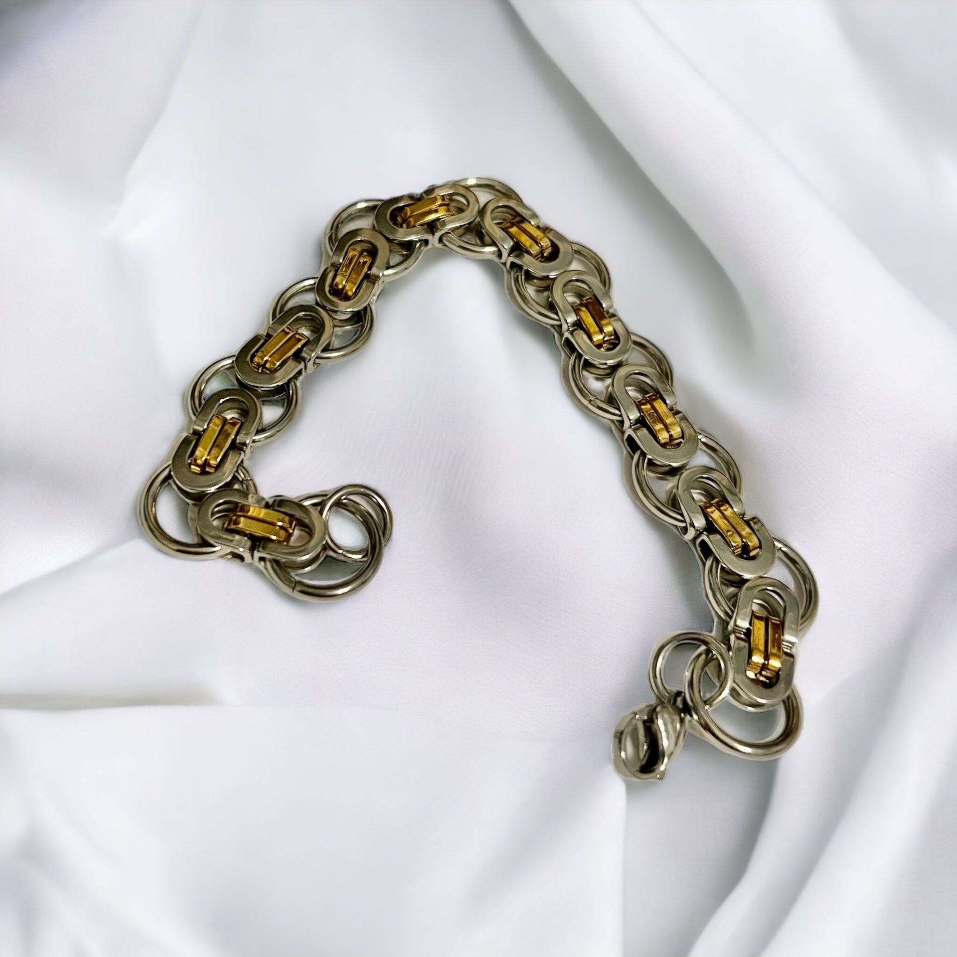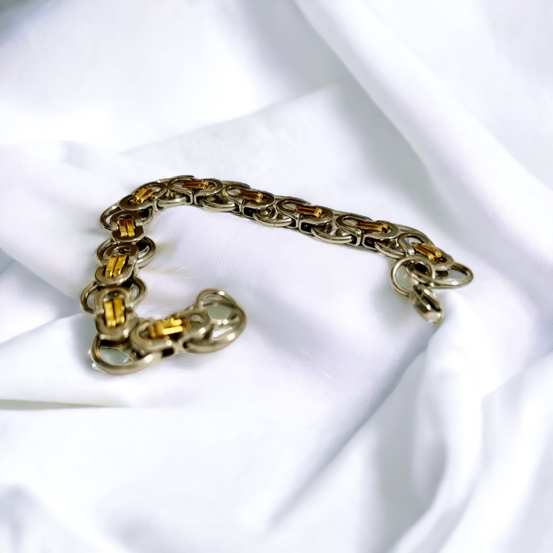 Elevate your style with our exquisite Gold & Silver Two Tone Steel Link Stainless Steel Bracelet, the perfect accessory to effortlessly enhance any ensemble.