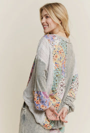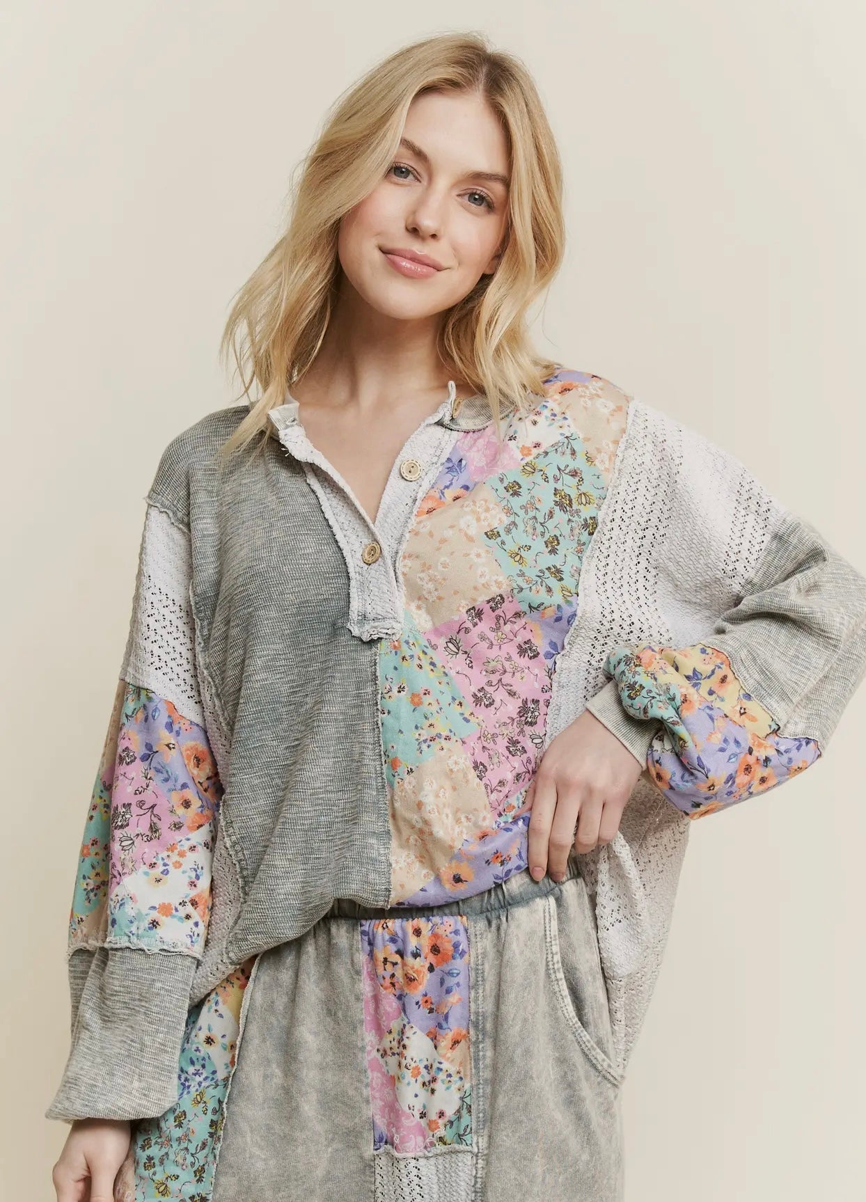Increase quantity for Mineral Wash Floral Jacquard Henley Boho Top