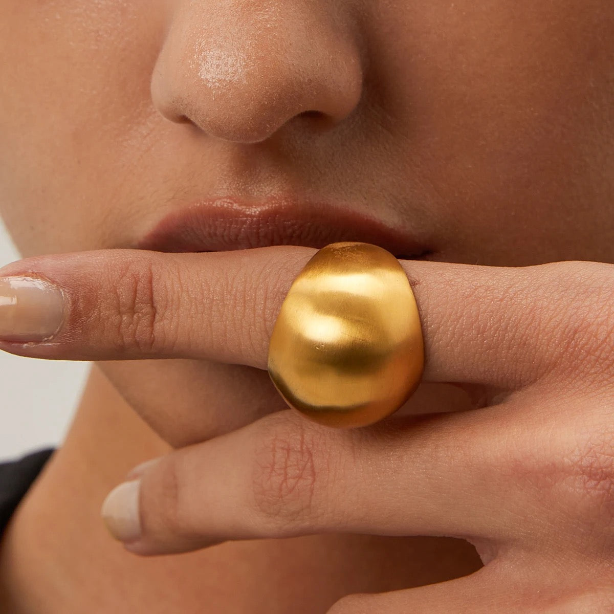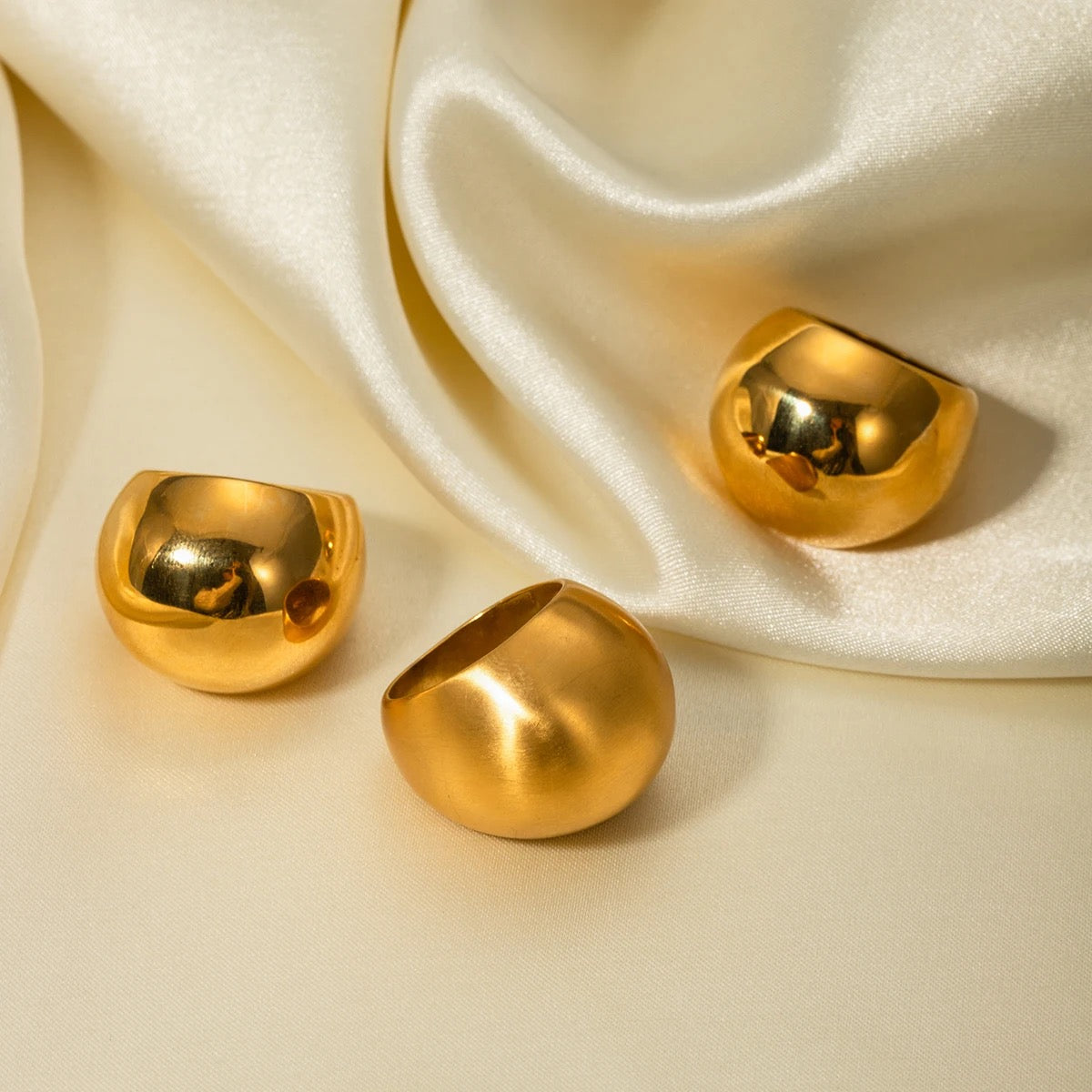 Elevate your style with our exquisite 18k gold plated,Round matted 18K Gold Plated Ring the perfect all gold like accessory to effortlessly enhance any ensemble.