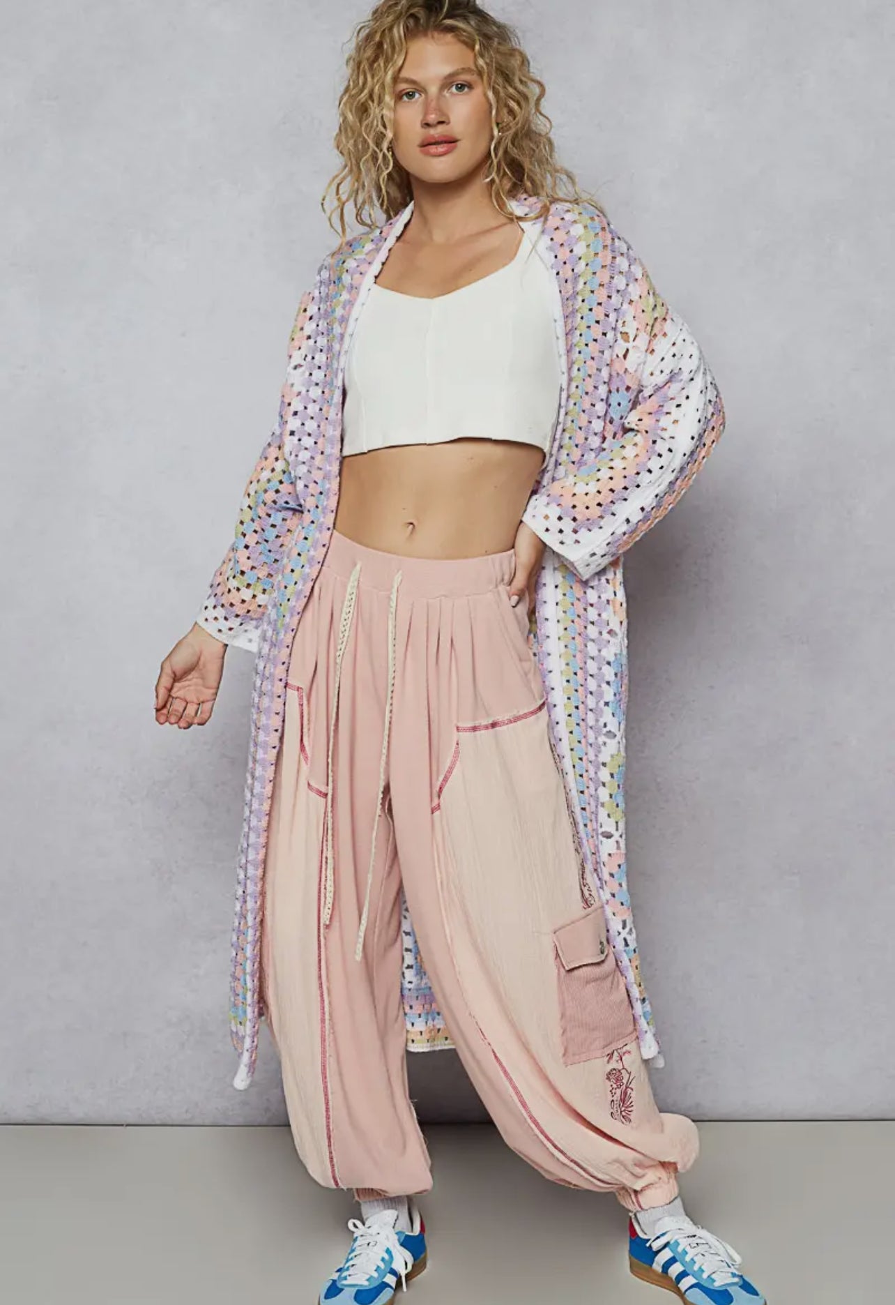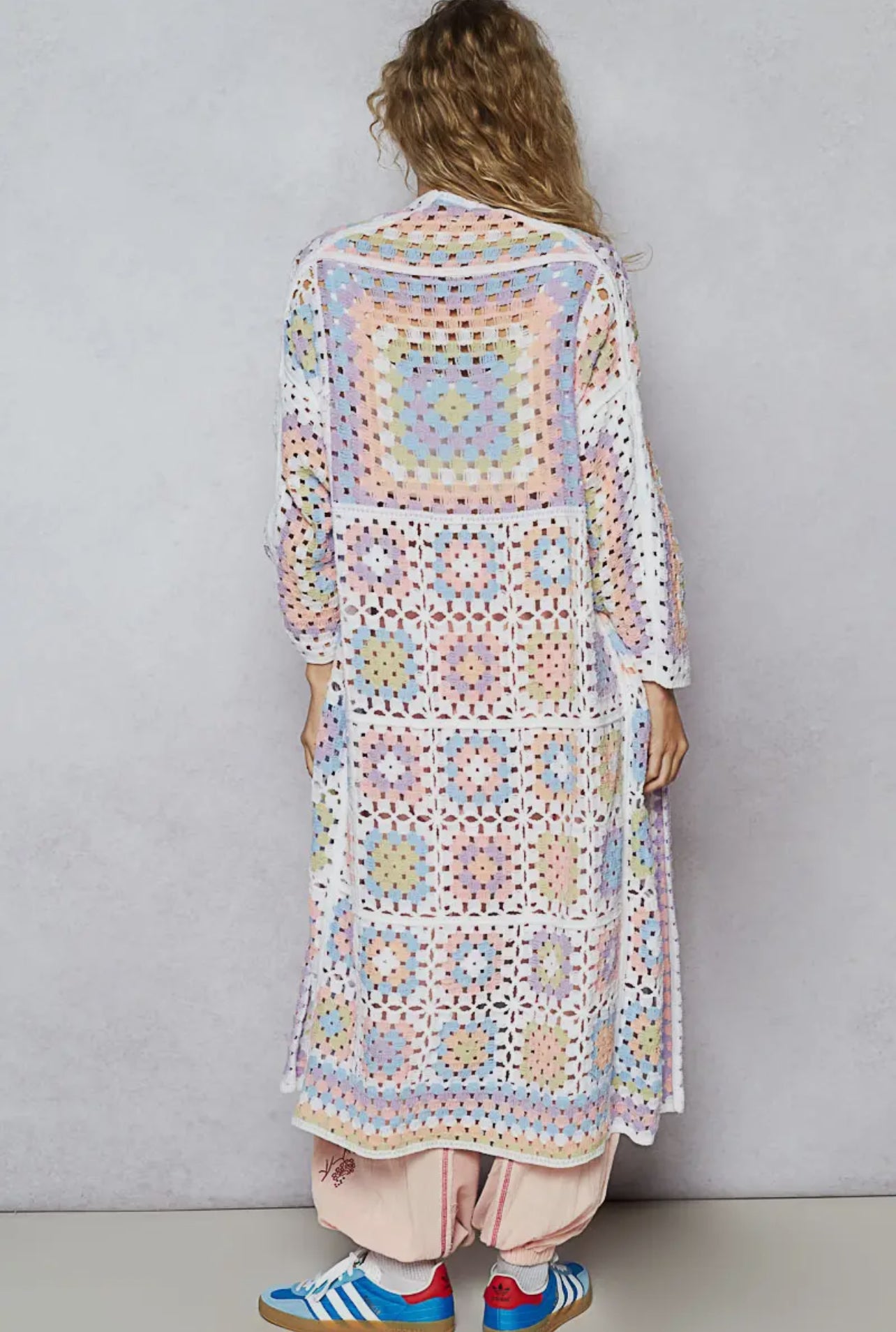 POL Long Sleeve Crochet Cardigan Pastel-One Size-Fits up to L/XL