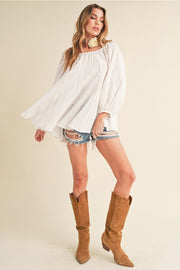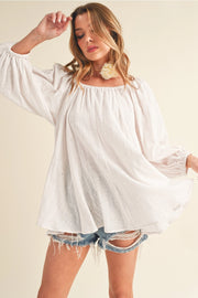 Oversize Off Shoulder Tunic Dress Cotton Top