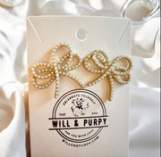 Elevate your style with our exquisite Pearl Bow Stud Gold Plated Earrings, the perfect earrings, to effortlessly enhance any ensemble or for a special evening