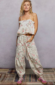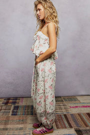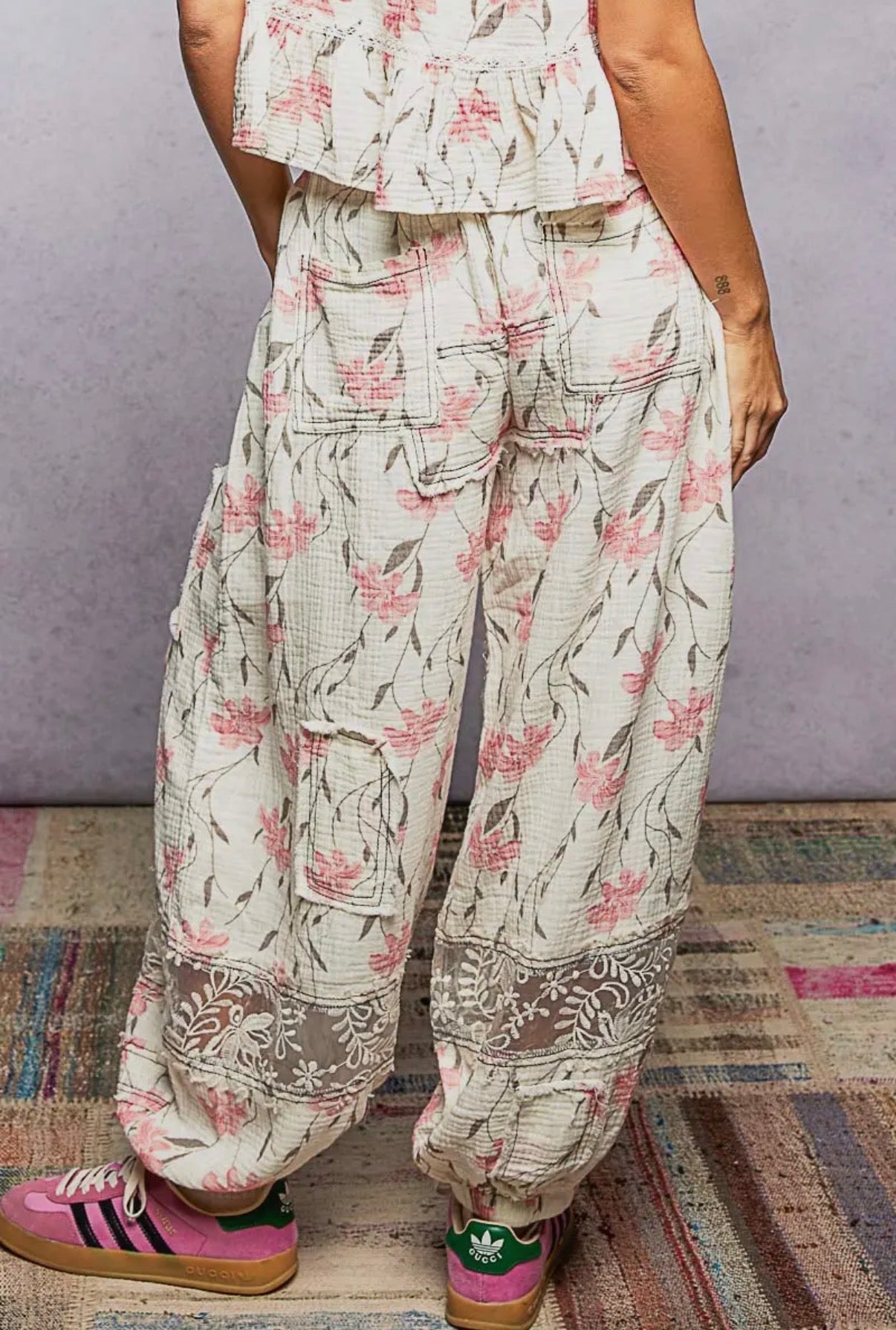 POL Double Gauze Floral Lace Patch Joggers