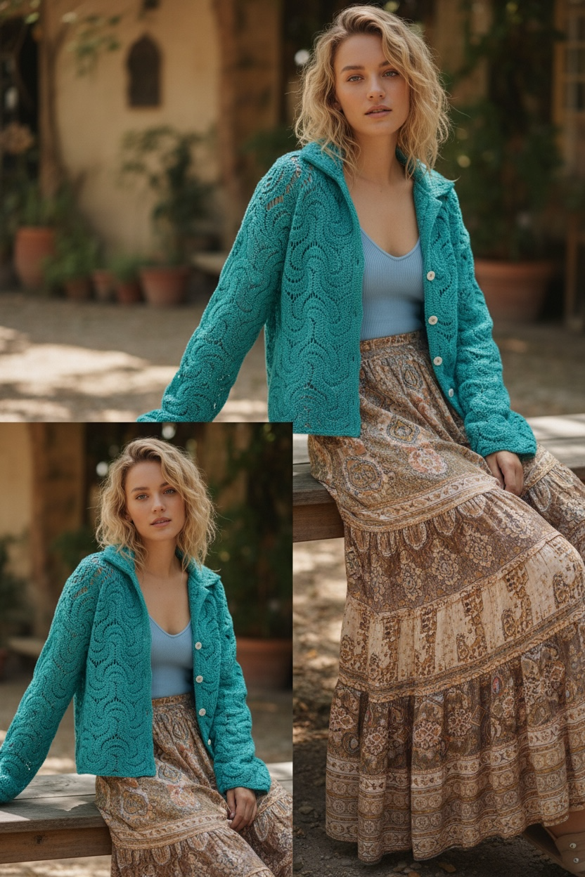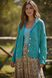 POL One Size Long Sleeve Varied Crochet Pattern Cardigan-Fits S-L