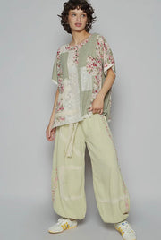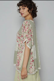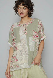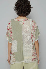 Increase quantity for POL Sheer Strip Floral Patch Oversize Top