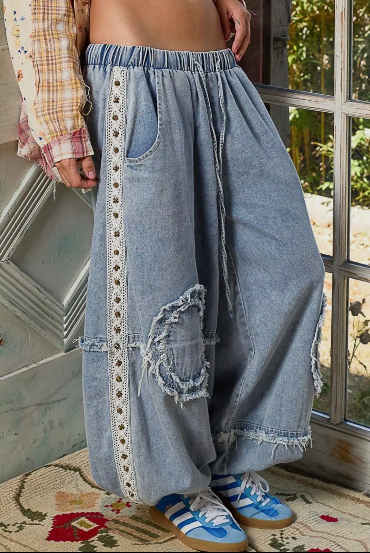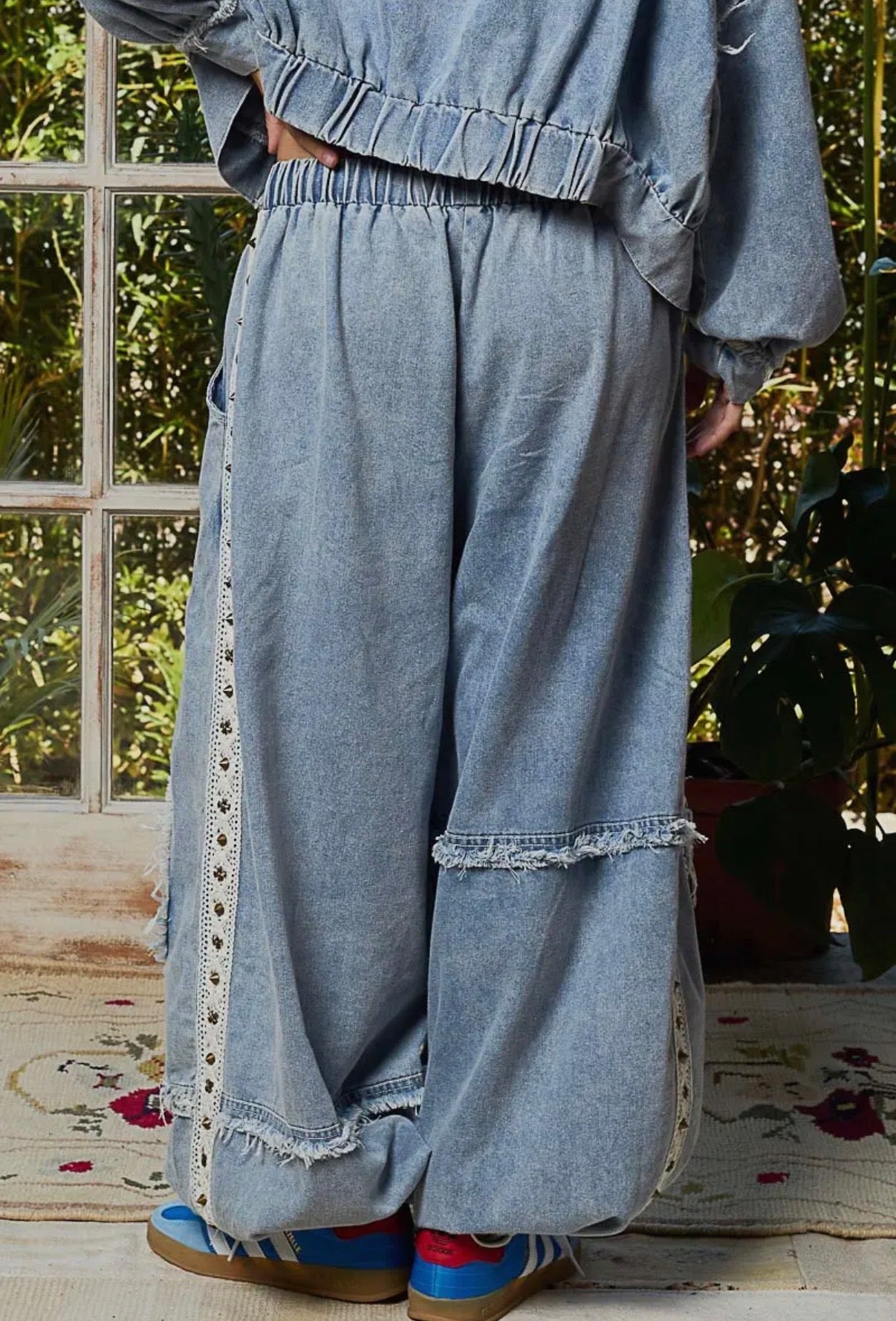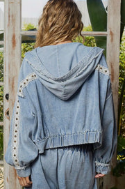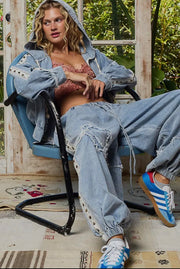 POL Vintage Washed Double Gauze Studded Jacket and Jogger Set